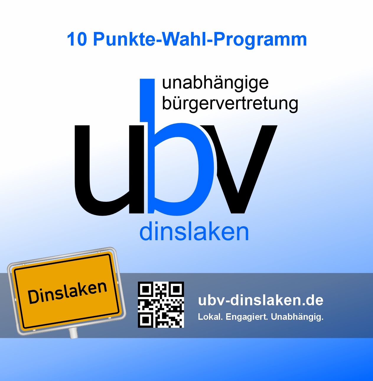 Wir von der UBV Dinslaken machen Politik ohne Parteibuch – dafür mit gesundem Menschenverstand, klaren Zielen und echter Nähe zu den Bürgerinnen und Bürgern. Unser 10-Punkte-Programm ist unser Versprechen an Dinslaken: Wir wollen unsere Stadt gemeinsam gestalten – transparenter, nachhaltiger und lebenswerter für alle.